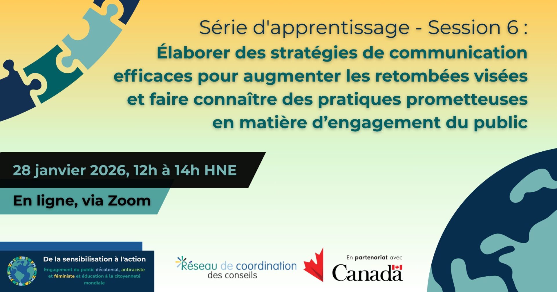 Le réseau inter-conseils s’engage à créer un espace pour que des conversations importantes puissent avoir lieu. Conscient que des dialogues et des discussions ouverts sont cruciaux pour la solidarité mondiale, le CII rassemble des personnes qui sont à l'avant-garde du changement pour partager les leçons et les idées de leur travail. Nos webinaires se concentrent sur diverses questions telles que l'éducation à la citoyenneté mondiale, l'engagement public décolonial, antiraciste et féministe, les technologies numériques et la solidarité mondiale, l'impact de la pandémie mondiale sur les organisations à but non lucratif, l'adaptation de l'engagement public et l'éducation à la citoyenneté mondiale. programmes à la sphère en ligne et les considérations éthiques dans l’engagement du public.