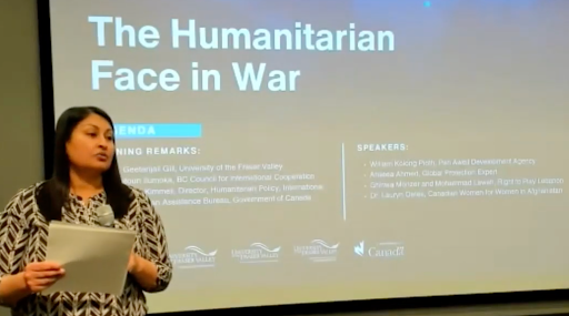 BCCIC partnered with the University of the Fraser Valley to deliver a hybrid event titled, The Humanitarian Face in War. Matthieu Kimmell, Director for Humanitarian Policy, Global Affairs Canada, joined BCCIC to speak on Canada’s contributions and approaches to humanitarian aid and conflict response. The event aimed to raise awareness and foster a deeper understanding of the complexities of armed conflict, the dire need for action, and the tireless efforts of humanitarian organizations, including those working to support women and youth in war-torn regions. The event saw roughly 139 attendees (nearly an equal split between online and in-person attendees)